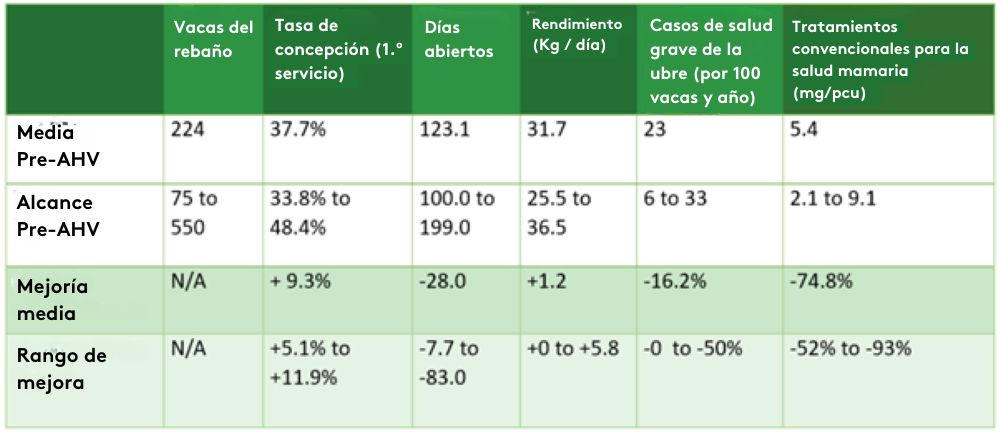 Esta evidencia indica que AHV ha sido pionero en un enfoque genuinamente revolucionario. Por primera vez, las vacas se someten a una limpieza proactiva y sostenible, lo que se traduce en rebaños más sanos y explotaciones más eficientes. El impacto de los métodos de AHV es evidente: menos problemas de salud y una mejora general del bienestar y el rendimiento.