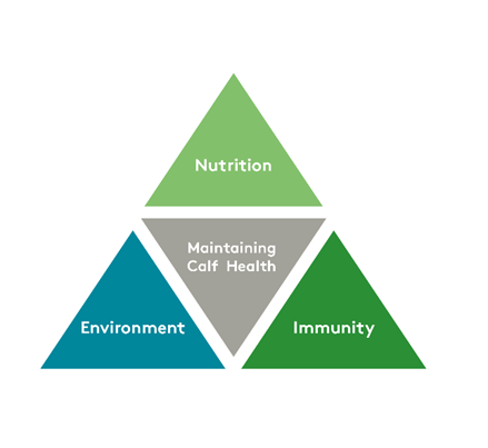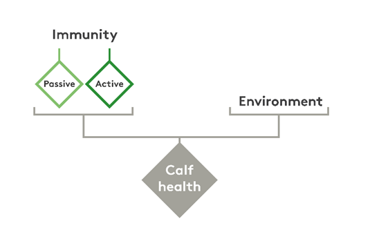 Figura 1: El mantenimiento de la salud de los terneros viene determinado por el equilibrio entre su capacidad para defenderse (inmunidad) y los retos medioambientales.