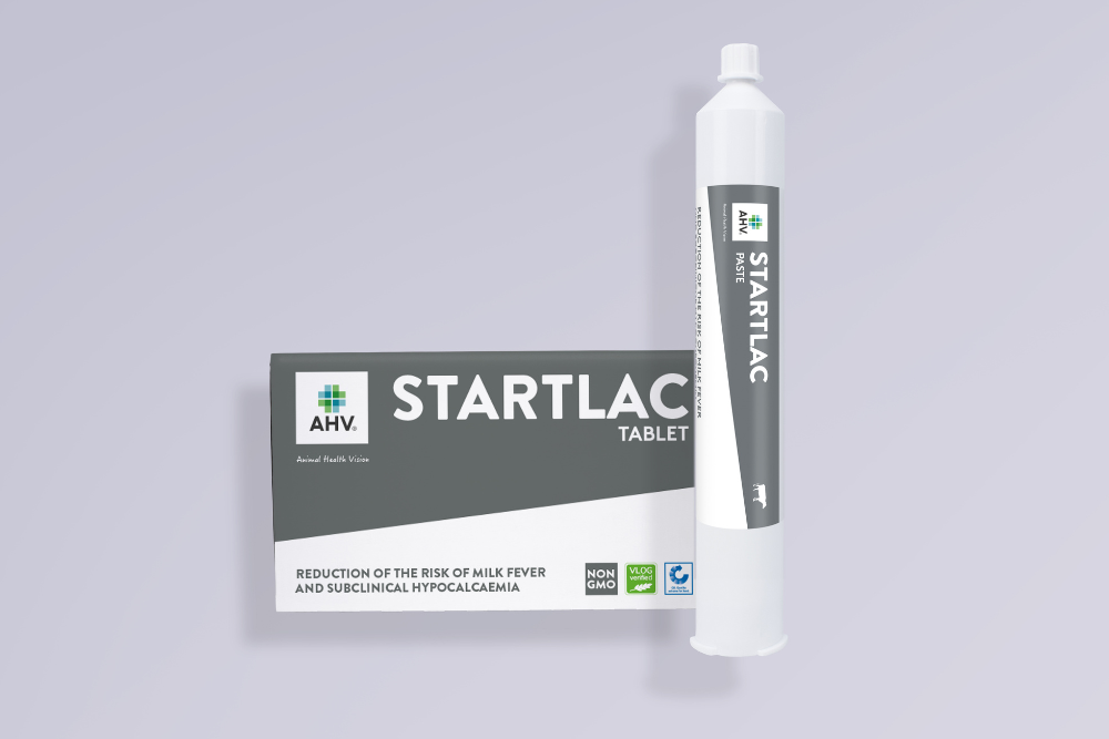 AHV’s advice is to administer AHV StartLac tablet immediately after calving and repeat this after 12 hours to support the cow with sufficient and readily available magnesium, calcium, phosphorus and vitamin D3. StartLac is a dietetic feed for dairy cows that can be used to support cows during the production start-up and for the reduction of the risk of milk fever and subclinical calcium deficiency (hypocalcaemia).