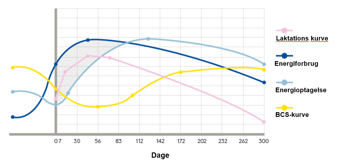 Figur 1: Koens energiniveau efter laktationens opstart.