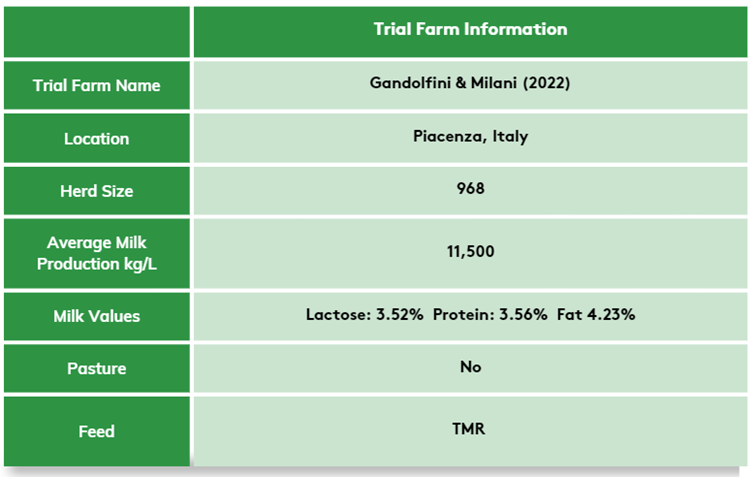 The trial started in February 2022 and finished 100 days after the last cow received her treatment. The animals were chosen randomly, including both first- and multiple lactation cows and conducted as follows: