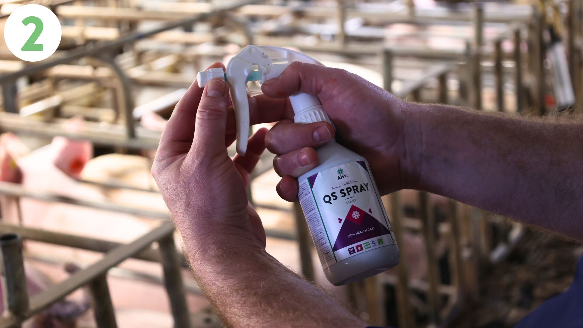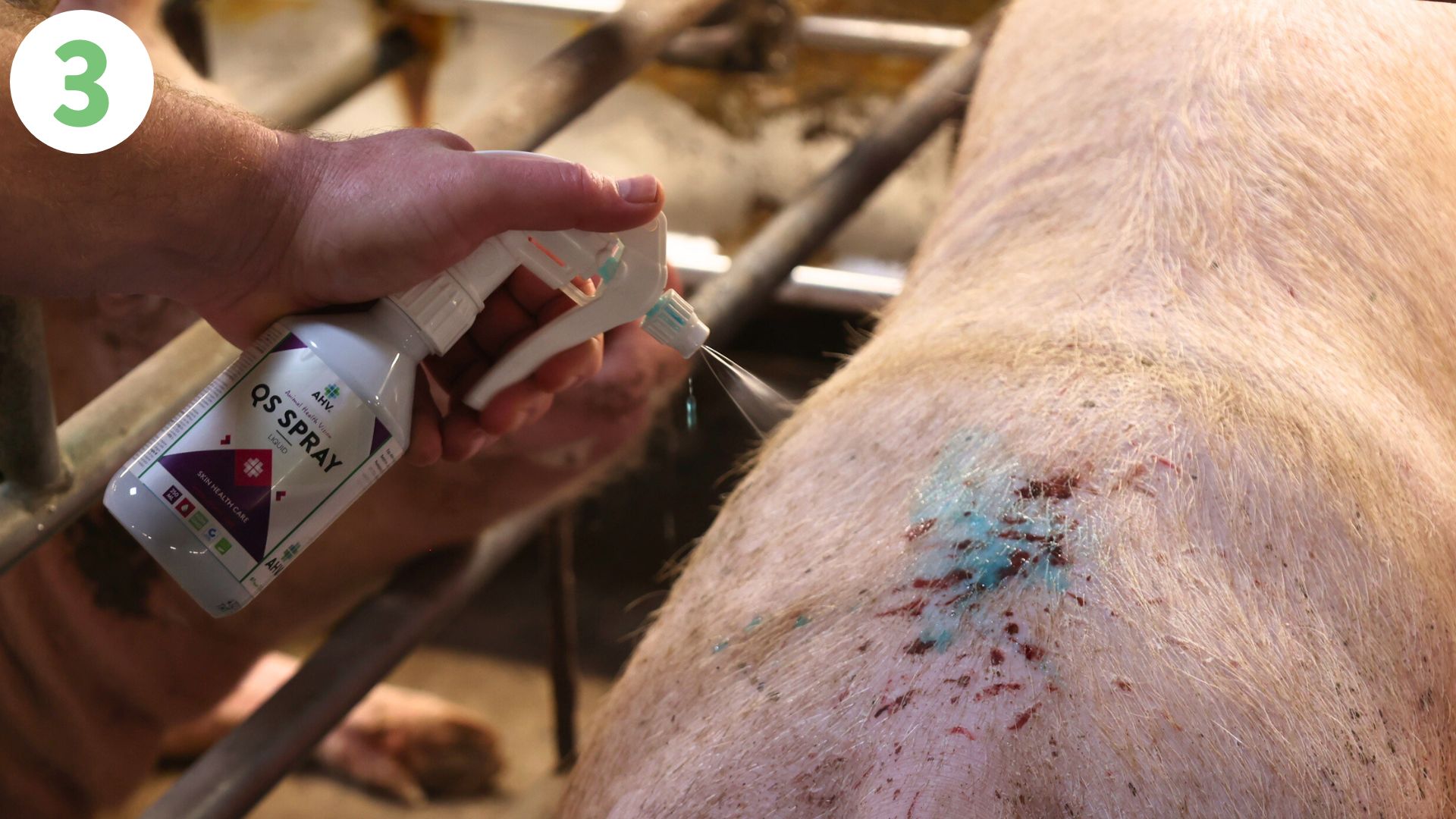 AHV QS Spray Concentrate is a topical spray for farm animals to support skin resilience during periods of stress by influencing the quorum sensing of microorganisms and increasing blood circulation of the skin.
