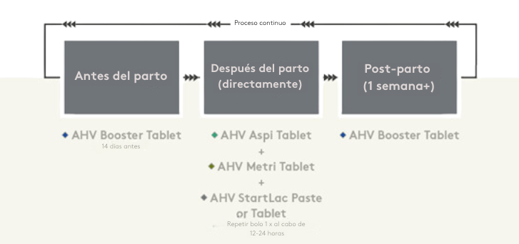 El Programa de Transición de AHV, mencionado anteriormente, se centra en el periodo anterior y posterior al parto, proporcionando la energía y minerales necesarios y estimulando la ingesta de materia seca. Este programa se complementa perfectamente con el Programa de Salud Uterina de AHV, que ofrece un apoyo completo a las vacas recién paridas y permitiéndoles reanudar el ciclo productivo de forma óptima.