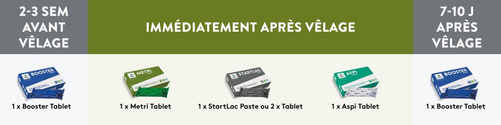 Ce procotole comprend le Metri Tablet, le StartLact Paste ou Tablet et l’Aspi Tablet. Combinés ensemble, ils favorisent la récupération utérine après vêlage, préparent la vache pour sa prochaine gestation et assure un bon démarrage en lactation. Les données ont montré une amélioration de la production laitière au cours des 21 premiers jours de lactation, une baisse des problèmes de santé utérine et un taux de réussite à l’IA supérieur de 3%.