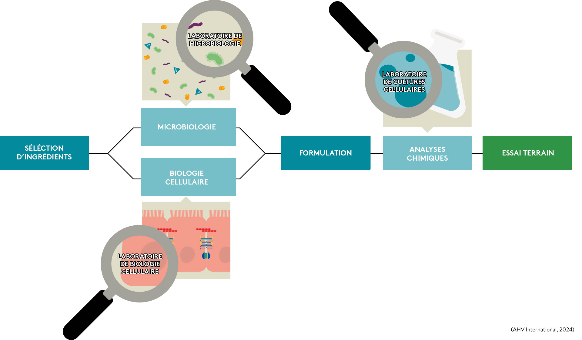 Chaque étape permet de valider l’efficacité et la sureté de la formulation finale.
