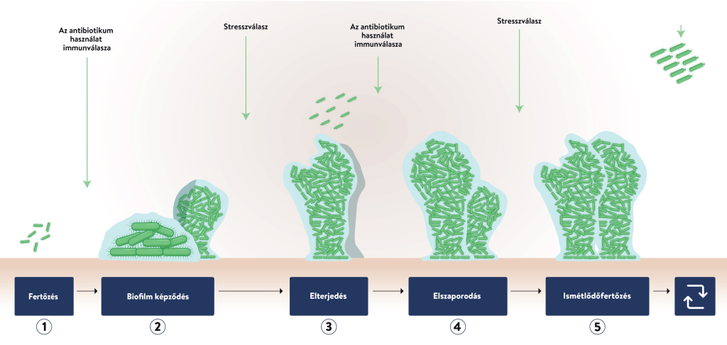 Ábra. 2 A biofilmmel kapcsolatos fertőzések krónikus fertőzésekhez vezethetnek