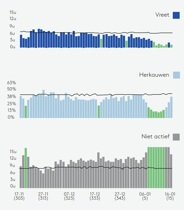 - Herkauwtijd: Wij adviseren een totale herkauwtijd van tussen de 4-10 uur.