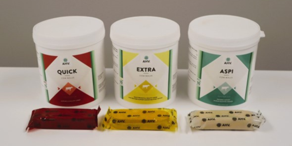 - For ‘clear cows’ with little to no biofilm in their udder, we recommend an AHV Extra Bolus 6-8 weeks prior to drying off and a natural relief bolus called AHV Aspi Bolus at the time of drying off.