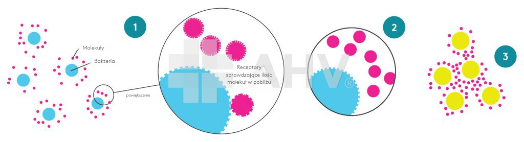 Kiedy populacja określonych bakterii jest niewielka, rozrzedzenie ich molekuł jest na tyle silne, że jakakolwiek współpraca między nimi staje się nieefektywna. Jednak w momencie wzrostu populacji, zagęszczenie molekuł pozwala na wiązanie się za pomocą receptorów (Bassler, 2009).