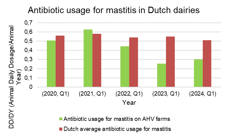 Figure 1: Antibiotic usage on AHV farms vs. Dutch average.