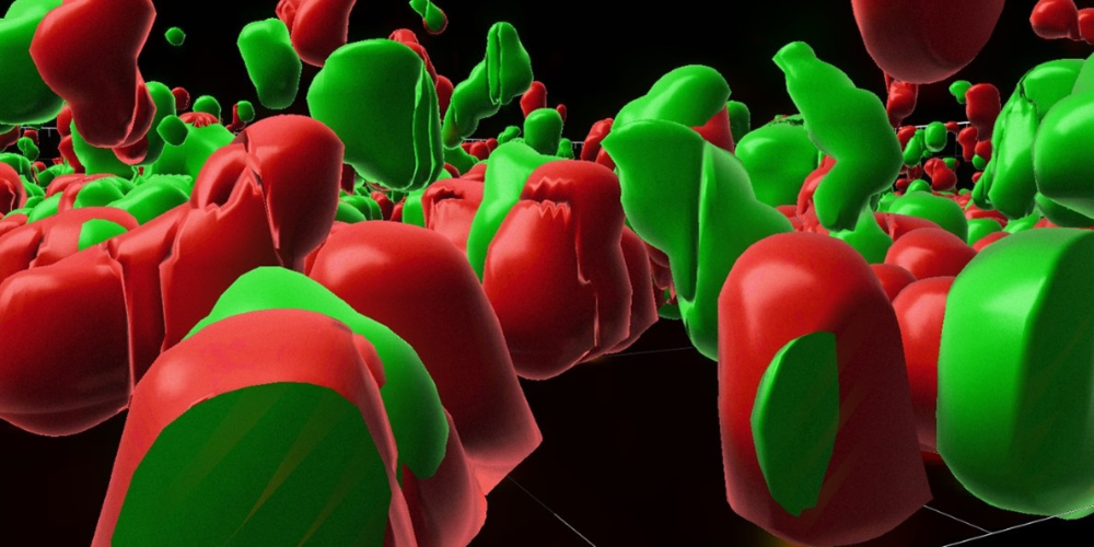 Z različnimi metodami merimo tudi MBEC vrednost, vključno s konfokalnimi, da lahko zelo natančno vidimo, pri kateri koncentraciji naših QQ komponent celice v biofilmu postanejo neaktivne in pri kateri koncentraciji se biofilm začne zmanjševati. Da bi to ugotovili, izvedemo aktivno/neaktivno obarvanje biofilma. Barvanje se uporablja za razlikovanje med aktivnimi in neaktivnimi celicami, na obe vrsti je pritrjeno fluorescentno barvilo, rdeče za neaktivne in zeleno za aktivne celice. Konfokal lahko skenira biofilm plast za plastjo in oblikuje 3D sliko (slika 2). To lahko uporabimo za preslikavo učinka na celoten biofilm.