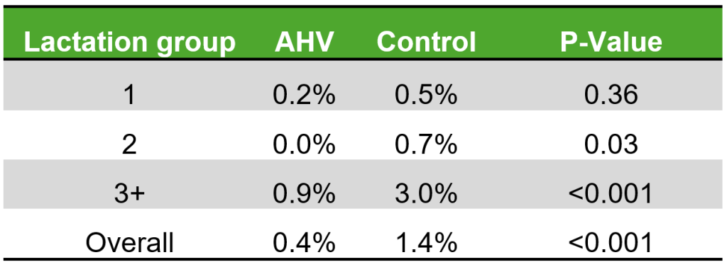 The results demonstrated significant improvements in health and productivity among cows treated with the AHV protocol: