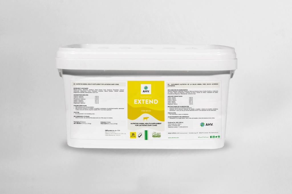 AHV Extend Bolus is part of several AHV Health programs and their products to support Udder Health and Uterine Health. AHV’s Farm Advisors will work with you to customize a protocol that fits your needs.