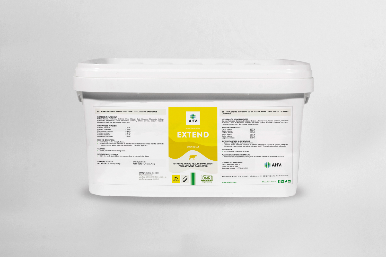 The AHV Extend Bolus is for sustained enhancement of the immune system to support during the first symptoms of metritis and mastitis. Provide 1 bolus one time per animal orally using a suitable AHV Cow bolus applicator.